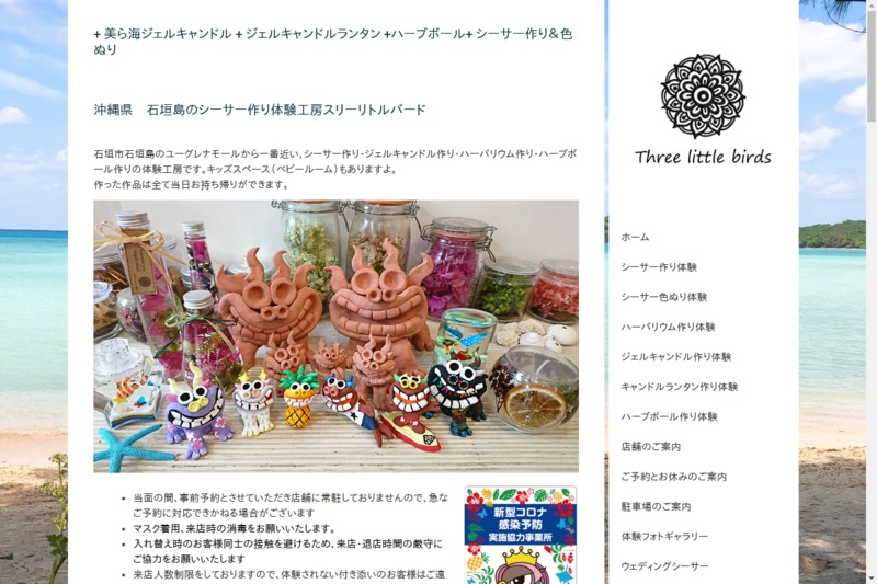 | 店舗名 | 石垣島シーサー作り Three little birds |